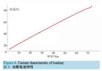 根據輪轂電機的性能要求,設計了輪轂電機的試驗項目,包括空載試驗、加載試驗、效率試驗等。下面以一臺自主研制的 3 kW 輪轂電機電機為例,進行試驗項目說明。電機的基本參數見表 2。3.1. 空載試驗 空載試驗主要測量電機的最高轉速、空載電流、損耗等[4]。試驗時,保持額定電壓不變,電機不帶 負載運行,逐步調節電機轉速至最大值,記錄電機的最高轉速、空載電流、輸入功率等參數。試驗結果 見表 3。3.2. 加載試驗 加載試驗時,給電機施加 1.5 倍額定輸出轉矩,然后逐步降低轉矩至0.25 N T ,適當選取若干個點, 記錄電機運行參數。根據所得數據,繪制電機的電流特性( inIT − 曲線)、機械特性(nT − 曲線)和功率特性 ( in PT − 、 outPT − 和 T η − 曲線),分別見圖 6~8。加載電流特性,是指輸入電流關于輸出轉矩的函數,輪轂電機的加載電流特性是一條斜率為正的直 線。機械特性,是指電機轉速關于輸出轉矩的函數。輪轂電機的機械特性是一條斜率為負的直線,與橫、 縱坐標的交點節距分別代表電機的堵轉轉矩和空載轉速。 功率特性,是指電機的輸入/輸出功率關于輸出轉矩的函數。為方便觀察,圖 8 中還給出了系統效率關于輸出轉矩的函數。3.3. 效率試驗 效率試驗的主要目的是測量電機和控制器在不同轉矩和轉速下的效率分布,并繪制系統效率 MAP 圖[5]。所謂系統效率MAP圖,是指系統效率關于電機轉速和輸出轉矩的二元函數 ( ) , f n T η = 曲面在nT − 平面的等高投影,是分析電機效率性能的重要依據。圖9給出了試驗電機的系統效率 MAP,圖中還畫出 了電機的機械特性及其擬合線。