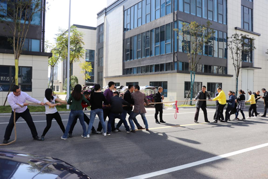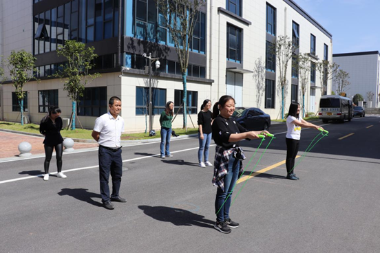 參觀及交流會議結束后,我們在休息室稍作休息,休息了十分鐘后,隨機分成了兩隊,開始緊張刺激的“對戰”——跳繩和拔河。在這一過程。大家見證了什么叫“友誼的小船說翻就翻”!