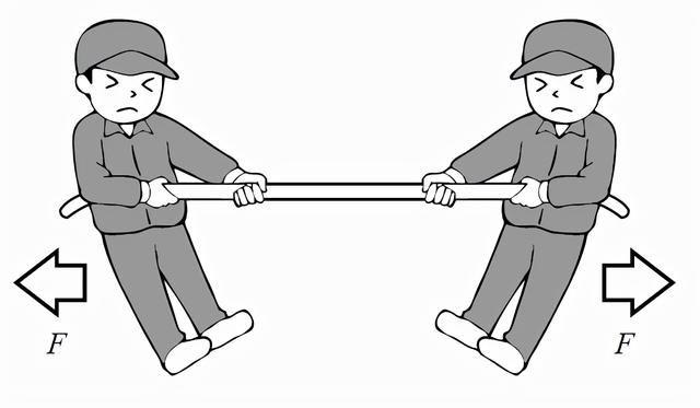 如果兩人都拉,則繩子上會有張力。在靜止狀態下, 拉力(F)和被拉力(F)保持均衡, 產生的張力相同, 這很容易理解。