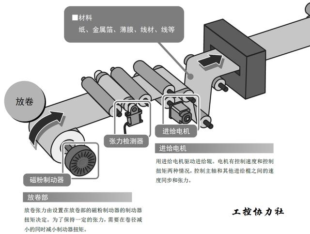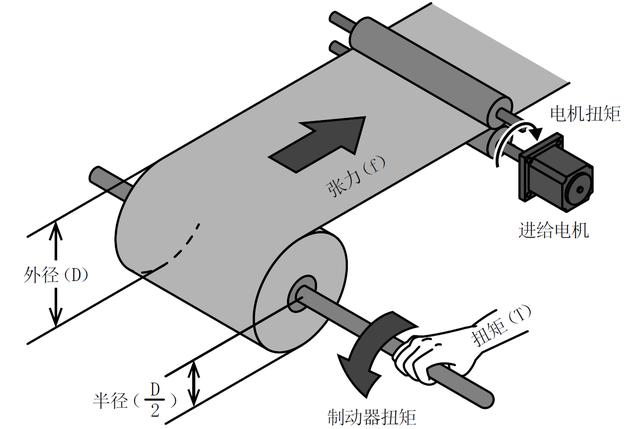 放卷部張力由設置在放卷部的磁粉制動器的制動器扭矩決定。為了保持一定的張力,需要在卷徑減小的同時減小制動器扭矩。